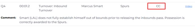 裁判报告还指出,斯马特在比赛还剩1.2秒时的发球违例判罚没有问题。斯马特在发球时,自己并没有完全处于界外的位置,这是一次违例。赛后斯马特虽然不满裁判的判罚,但也承认自己作为一名效力NBA多年的老将,不应该犯这样的错误。他表示自己应该担责,并表示队友并未责怪,而是调侃自己,队内气氛还是非常好。