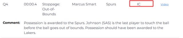 报告指出,比赛最后0.4秒,马刺的约翰逊是球出界前最后触球的球员,球权是属于湖人的,但裁判把球权错判给马刺,认为是斯马特最后触球。这次错判,湖人吃亏,马刺获利。